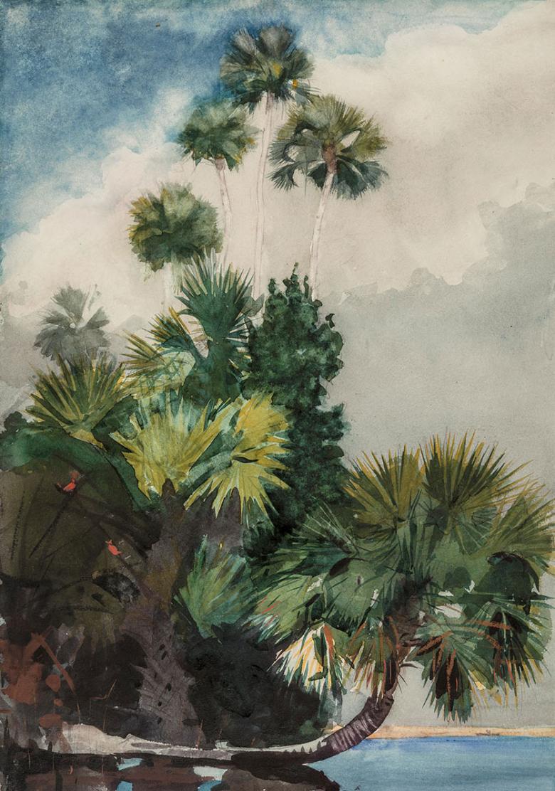 Visitors can follow Homer from the rocky coves of Prout’s Neck to the Adirondacks, from English fishing villages to the Caribbean’s bright shallows, witnessing the radical experimentation that transformed watercolor into a powerful, expressive force in American art. Alongside the watercolors, the show pairs oils, drawings, and prints to illuminate the ecological, artistic, and social environments that shaped his vision.