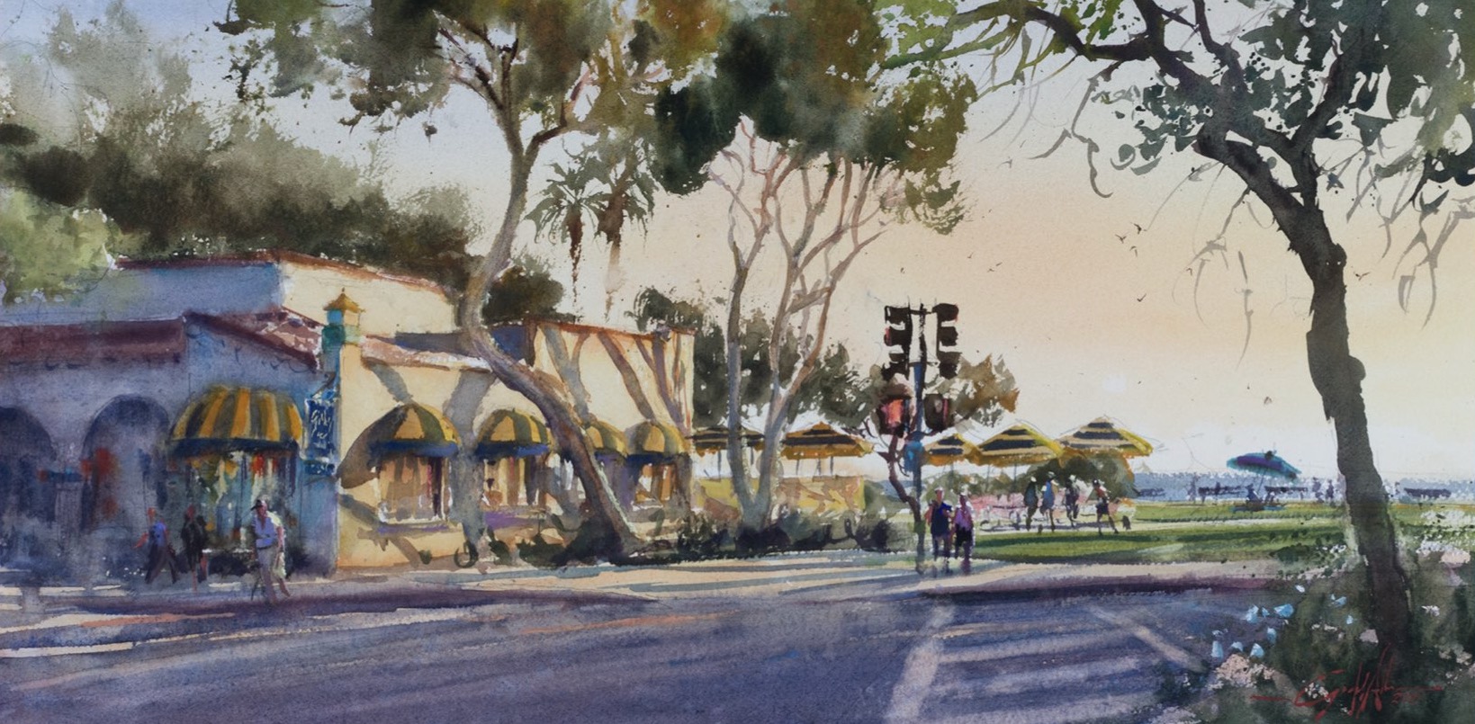 But Li wasn’t the only watercolor artist taking home big prizes. We also want to celebrate Geoff Allen’s win of The Irvine Museum Award for Town Proud.