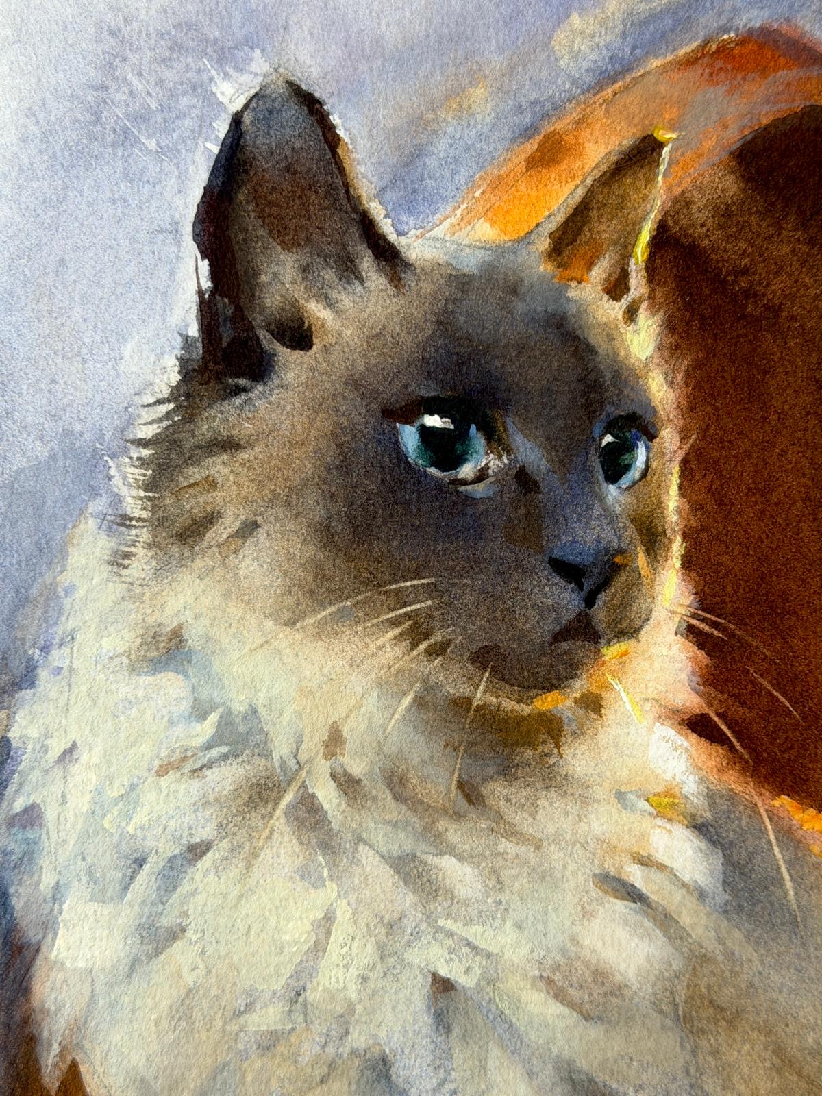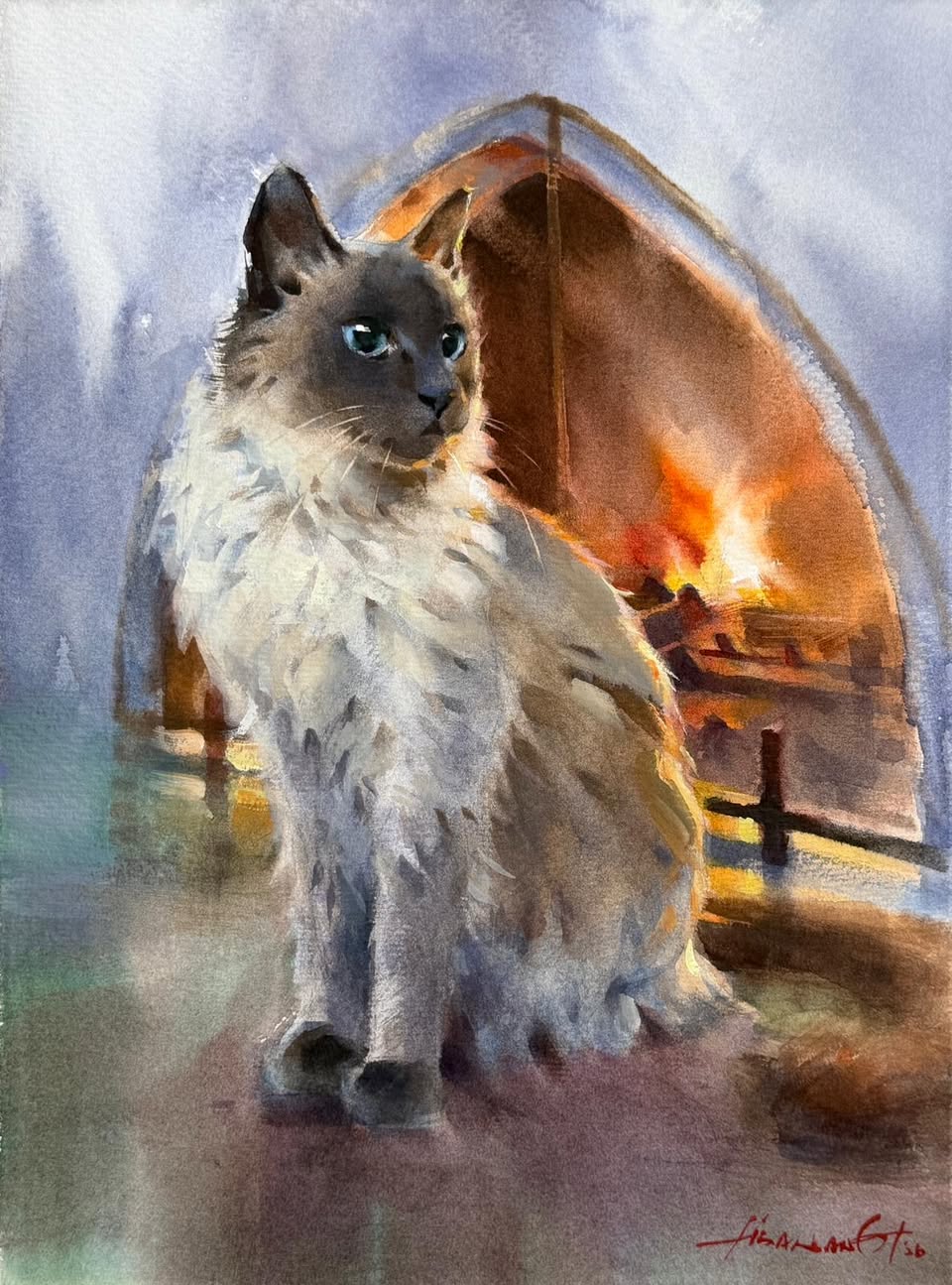 In the close-up view you can see how she captured the glow of the fire, and used lost and found edges to bring the cat to life.
