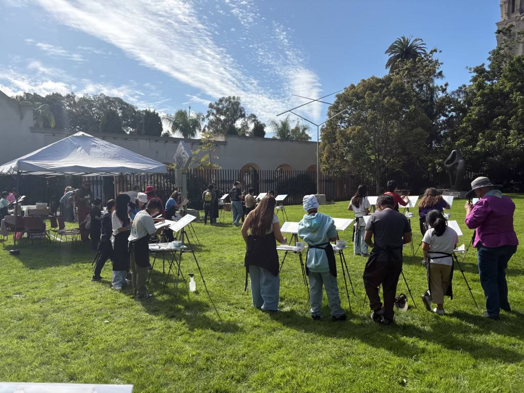 The program didn’t just hand kids a palette and wish them luck. Students first received brief art history lessons grounding them in the plein air painting tradition, then watched live demonstrations by working artists before picking up brushes themselves for hands-on outdoor watercolor painting sessions. The series culminated in a docent-led visit to the San Diego Museum of Art followed by a student paint-out in Balboa Park — one of nature’s greatest plein air landscapes in Southern California.